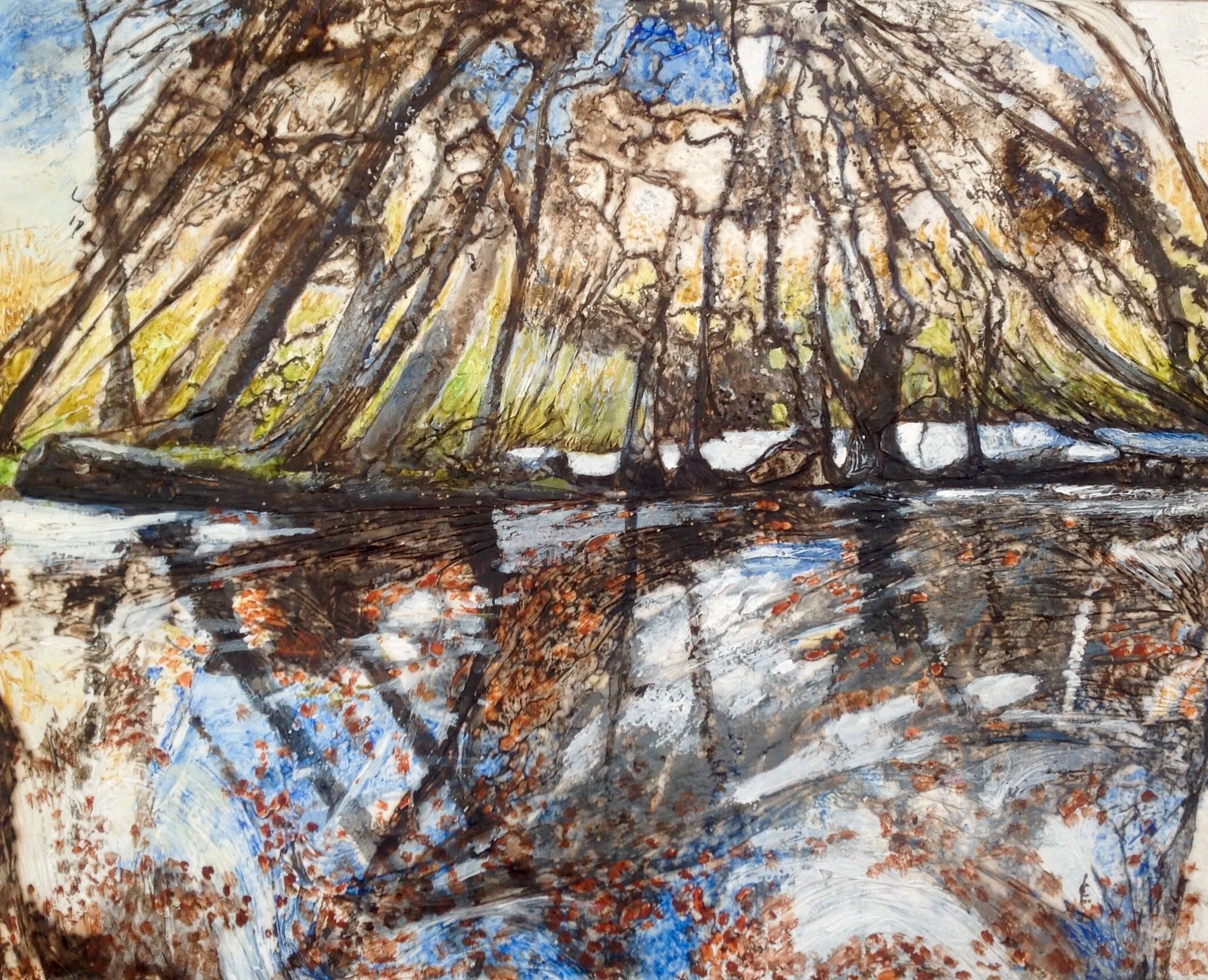 During the two lockdowns in 2020-2021, I have been walking and exploring Winnal Moors and the surrounding wildlife areas. I've watched the seasons change, each one with its own form of beauty. I have loved the winter trees, the texture of the bark, and the reflections in the River Itchen.
