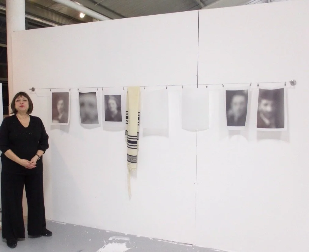 During one of the team projects at W.S.A. I had painted/drawn with brush, pen and ink, several small faces. On seeing them displayed on my studio wall, I decided that I would paint a further one hundred of them. This was to be a performative piece focusing on each person whilst I drew. I knew exactly the faces I would use! For many years I had viewed with awe, a family photograph taken in Poland in 1938. It was the family’s last meal together before they were rounded up and taken to the ghetto then on to die in concentration camps. I took photographs of each person, zooming in to make them vague, shadowy and distorted. Drawings of photographs of photographs of photographs. An act of "Post Memory" - a term explained by Marianne Hirsch when we make up our own ideas about someone we only know from a photograph.
