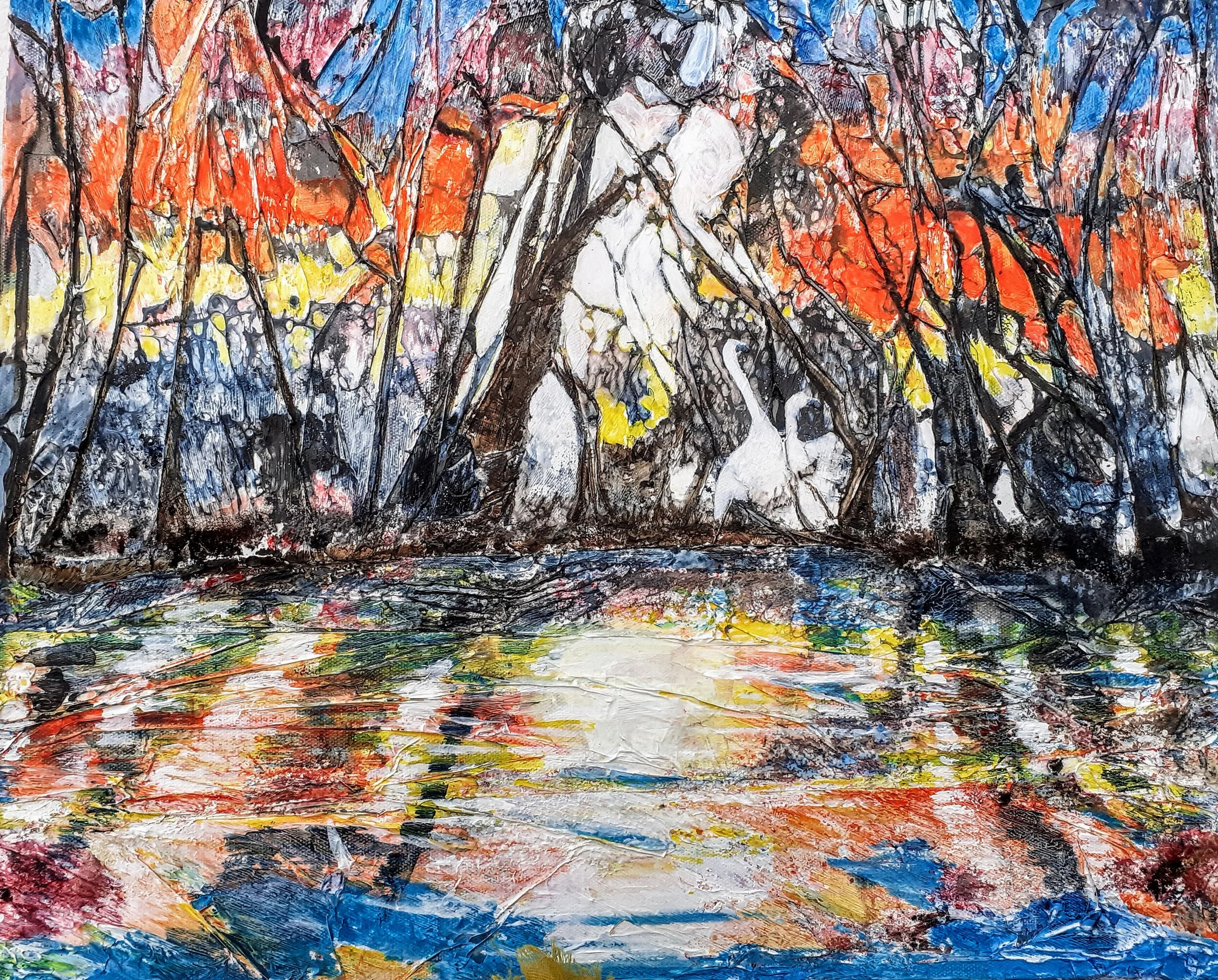 Swans. 40cm x 50cm - Mixed media on canvas.